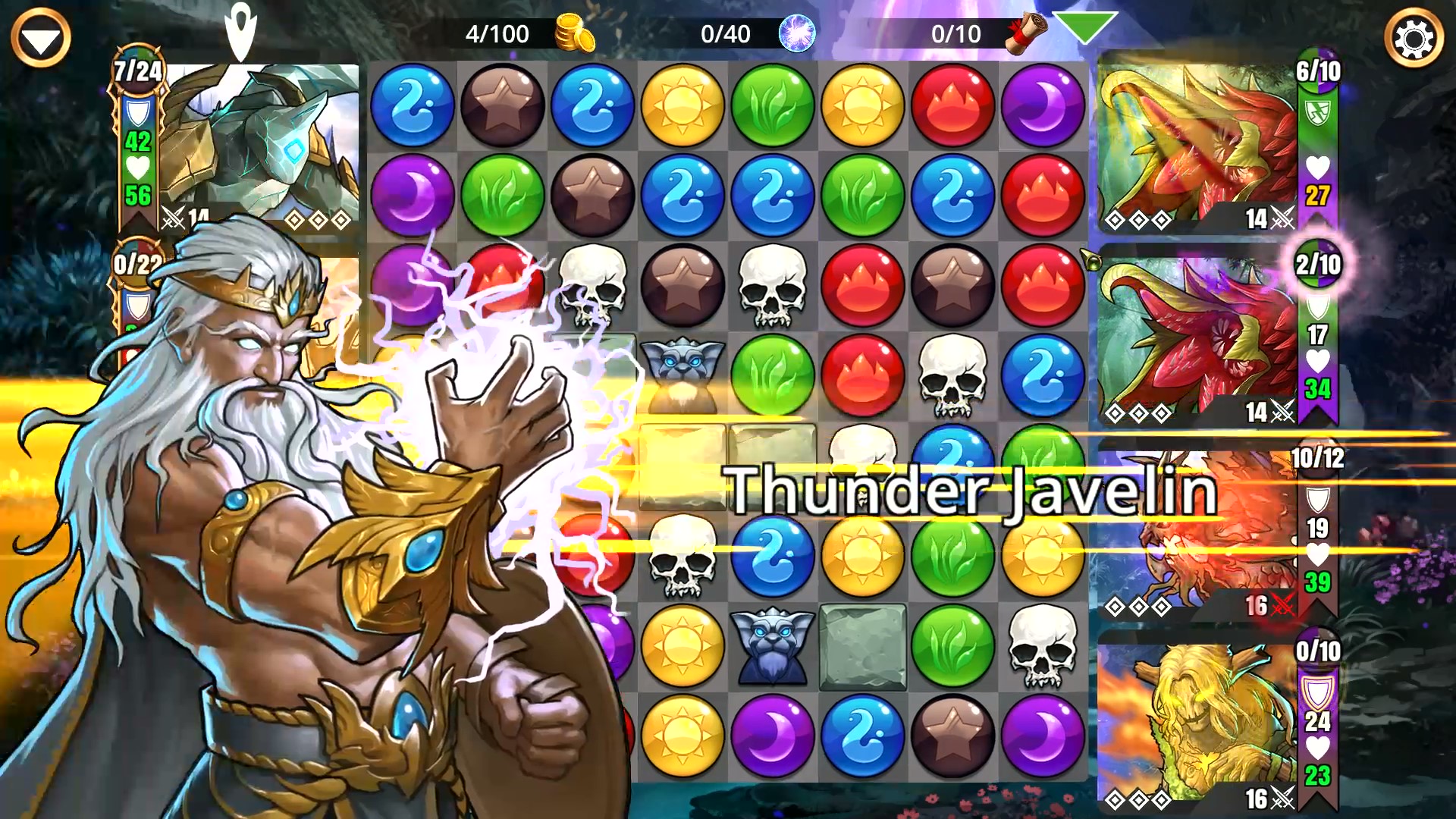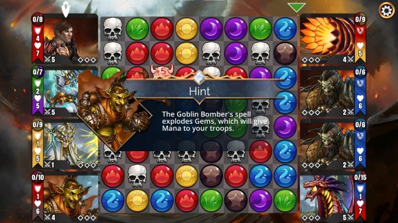 “From the creators of Puzzle Quest, comes the Puzzle/RPG/Strategy mash-up you’ve been waiting for, GEMS OF WAR! Embark on an epic journey across the realms Krystara where heroes can take on a world of adventure unlike any other. Battle your foes not just with swords and sorcery, but with a puzzle board! Match gems to power your spells, and match skulls to smite your enemies! Then take the spoils of war and forge a mighty empire. It’s highly addictive, easy to learn, and filled with crazy combos and tons of depth.“